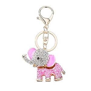Cute Big Ears Elephant Keychain Sparkling Keyring Crystal Purse Pendant Rhinestones Handbag Charm (Pink)…
