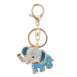 JML Elephant Key Ring Rhinestone Purse Charm Keychain Women Bag Pendant Blue