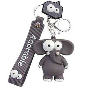 HSYHERE Boys Men Girls Women Creative Novelty Ugly Big Small Eyes Funny Soft TPU Silicone Rubber Zoo Animals Pendant Strap Keychain Key Ring Holder Clip -Brown Elephant