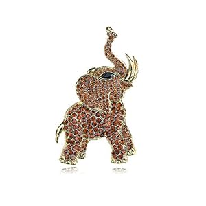 Alilang Golden Tone Brown Rhinestones Animal Elephant Trunk Brooch Pin