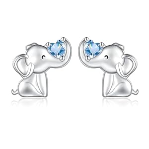 925 Sterling Silver Elephant Earrings Stud Birthstone Hypoallergenic Cute Animal Earrings Jewelry Gift for Women Girls