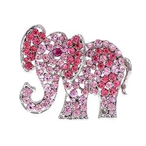 Alilang Womens Silvery Tone Clear Blue Pink Rhinestones African Elephant Brooch Pin