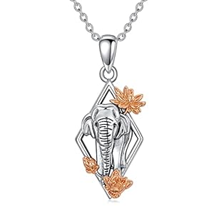 PROESS Lotus Elephant Necklace Sterling Silver Elephant Pendant Lotus Flower Necklace Elephant Jewelry Gifts for Women Girls
