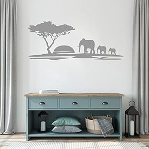 African Safari Wall Decal Africa Wild Animals Sign Nature Tree Elephant Vinyl Sticker Home Playroom Bedroom Decor Wall Art Nursery Mural Y65 (Grey)