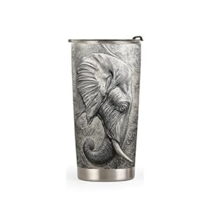 64HYDRO 20oz Elephant Gifts for Women, Men, Valentines Day Gifts for Her, Him, Coffee Thermos for Women, Couples Gifts, Animal Lovers Stone Elephant Tumbler Cup, Insulated Travel Coffee Mug with Lid