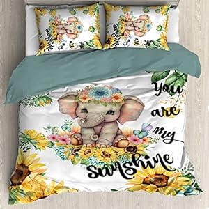 Todeyya Sunflower Elephant You are My Sunshine Lightweight Comforter Set (King Size) with 2 Pillow Shams, 3-Piece Set Duvet Cover Set Coverlet Bedspread Bedding All-Season