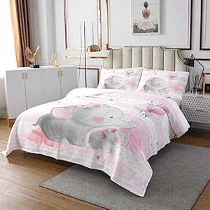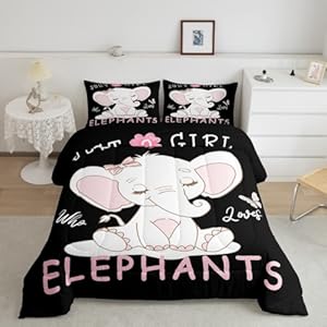 Feelyou Pink Elephant Bedding Set Just A Girl Who Loves Elephant Comforter Set for Kids Boys Girls Cartoon Elephant Comforter Kawaii Animal Duvet Set 2Pcs Twin Size