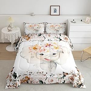Kids Cute Elephant Comforter Set Purple Cherry Blossoms Bedding Full Size Blue Animal Bedding Comforters & Sets Rose Floral Duvet Set Botanical Quilt Set Flower Blossoms Room Decor for Girls Boys