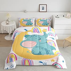 Feelyou Rainbow Comforter Set Colorful Stripes Bedding Set Elephant Print Comforter Cute Animal Quilted Duvet Set for Kids Boys Girls Twin Size Bedding Collection 2Pcs