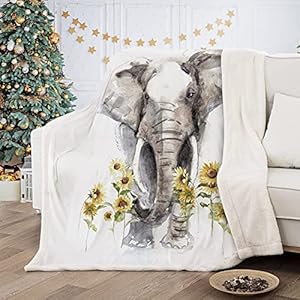 Elephant Blanket Sherpa Fleece Throw Blanket, Sunflower Elephant Gifts for Women Adults, Super Soft Elephant Blankets for Women, Warm Cozy Plush Bed Throws Blanket for Couch Sofa 50″ x60