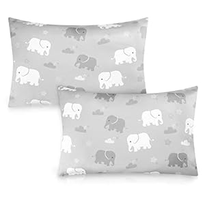 Toddler Pillowcase Boys, Kids Pillow Cover for Sleeping, 2 Pack Elephant Set Fit Pillow Sized 13″x 18″ Or 14″x19″, Travel Pillowcase, Envelope Closure, Soft Breathable