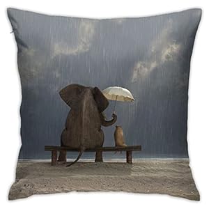 VARUN Throw Pillow Covers Elephant Holds Umbrella for Dog on Rainy Day Funny Design Square Pillowcase for Home Decor Sofa Car Bedroom Pillow case 18x18inch