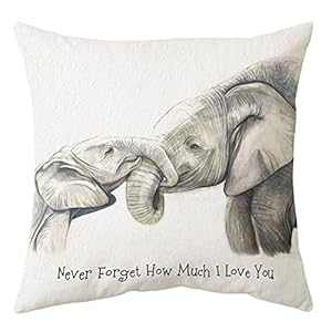 Sidhua Elephant Love Themed Pillowcase Decorations for Home, Baby Elephant Never Forget How Much I Love You Throw Pillow Cover 18”x18”, Valentine’s Day Gifts, Elephant Lover Gifts