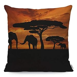 WONDERTIFY Throw Pillow Cover Case African Animal Elephants Family Walk Sunset,Soft Linen Pillow Case for Decorative Bedroom/Livingroom/Sofa/Farm House,Couch Pillow Cushion Covers 18×18 Inch 45×45 cm