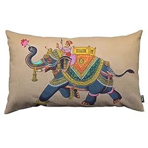 TKS MITLAN Watercolor Elephant with Jockey Pillow Cover 12×20 inch Traditional Rajasthani Art Mural Pillows Decorative Throw Pillows Farmhouse Decor for Home Cushion Case