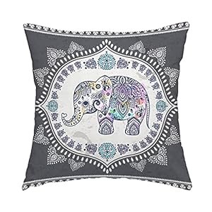 Swono Elephant Throw Pillow Cover, Ethnic Style Bohemian Pattern Creative Animal Elephant Gray Decorative Pillow Case Home Decor Square 16×16 Inches Pillowcase