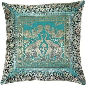 Real Online Seller Set of 1 Indian Pillow Covers Cases Square Ethnic Hand Embroidery Elephant Print Decorative Silk Cushion Cover for Sofa Bedroom Car Couch 16 X 16 Inchs