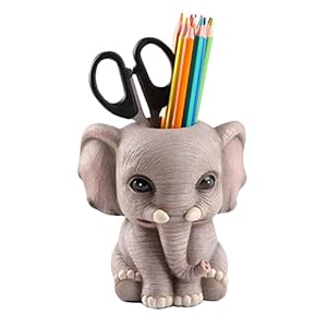 Cmrweio Elephant Pen Pencil Holder, Cute Animal Ornament Makeup Brush Holder Toothbrush Holder Home Office Desk Decor Organizer Accessory
