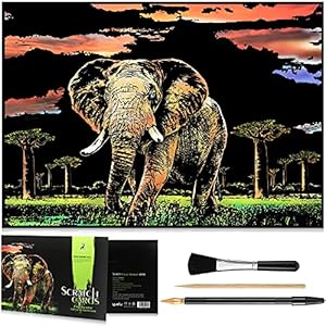 Scratch Art Rainbow Painting Paper DIY Crafts Womens Hobbies Engraving Art Scratchboard Scratch Painting Sketch Pads for Adults & Kids – 16” x 11.2” (Elephant Animal) Birthday Gift