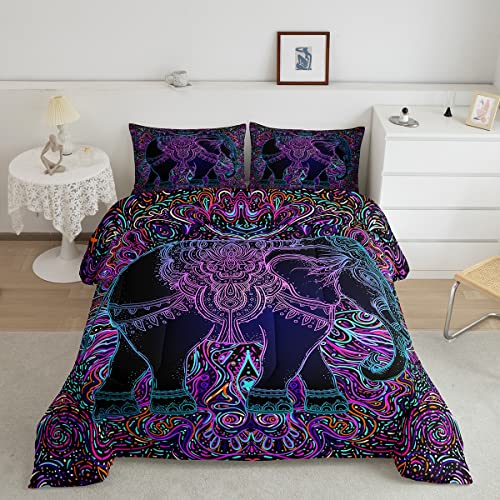 Erosebridal Bohemian Elephant Bedding Queen for Adults Hippie Paisley Comforter Set Africa Animal Bedding Sets & Collections Exotic Style Down Comforter Gradient Wildlife Bed Sets Breathable 3pcs