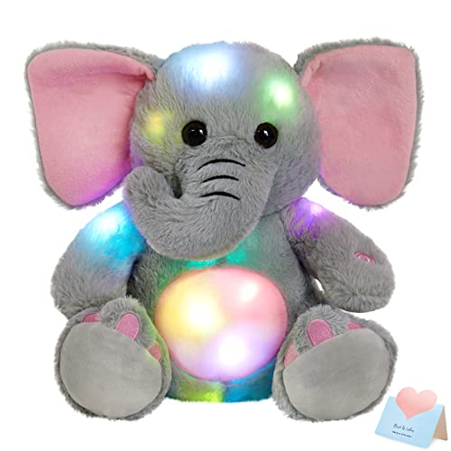 4. This LED Glow Elephant Stuffed Animal Elephant Soft Toy is about 13” H* 11.5” L* 11” W, which is a perfect size for both kids and adults to cuddle up with. It may be a soft toy as a decoration, or a night companion for kids, especially babies, who could cuddle it with sense of safety and comfort. Best gifts for kids, friends, families and the right choice for Christmas, New Year, birthday, anniversary and many other festivals. And you can use it to help kids learn more about animals.