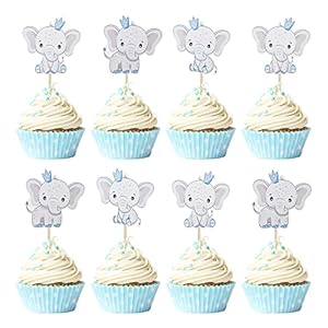 Gyufise 36Pcs Blue Elephant Cupcake Toppers It’s a Boy Baby Shower Cupcake Picks for Elephant Theme Gender Reveal Baby Shower Kids Boys Birthday Party Cake Decorations